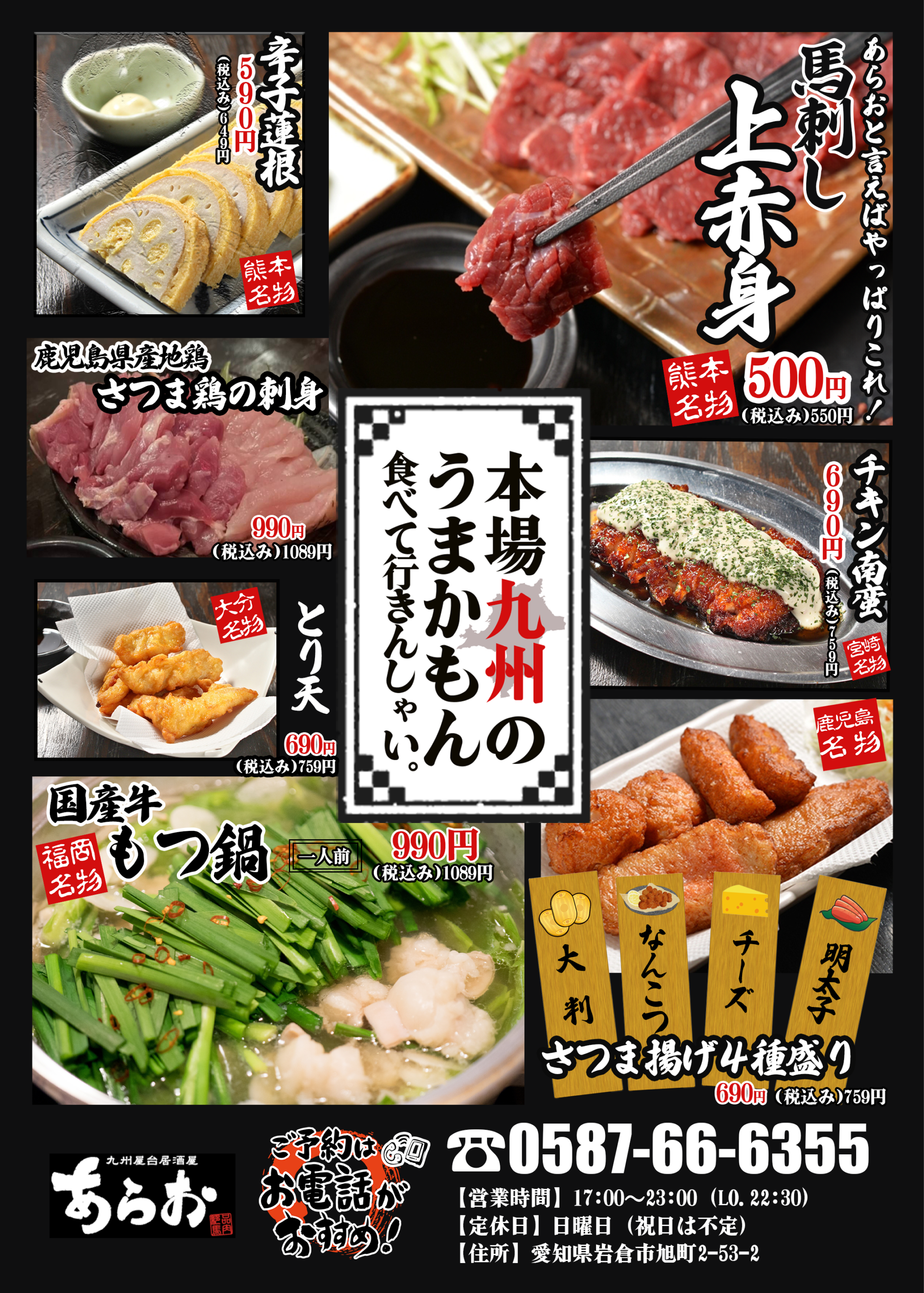 ☎0587-66-6355 九州屋台居酒屋あらお